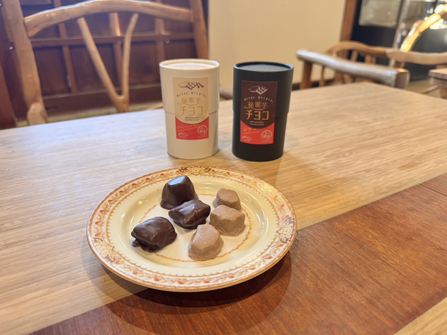 甘いうえに甘くした、秘蜜芋を原料としたチョコレート菓子「チヨコ」の販売も